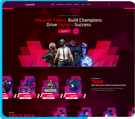 A high-energy esports platform built for players, teams, and fans.